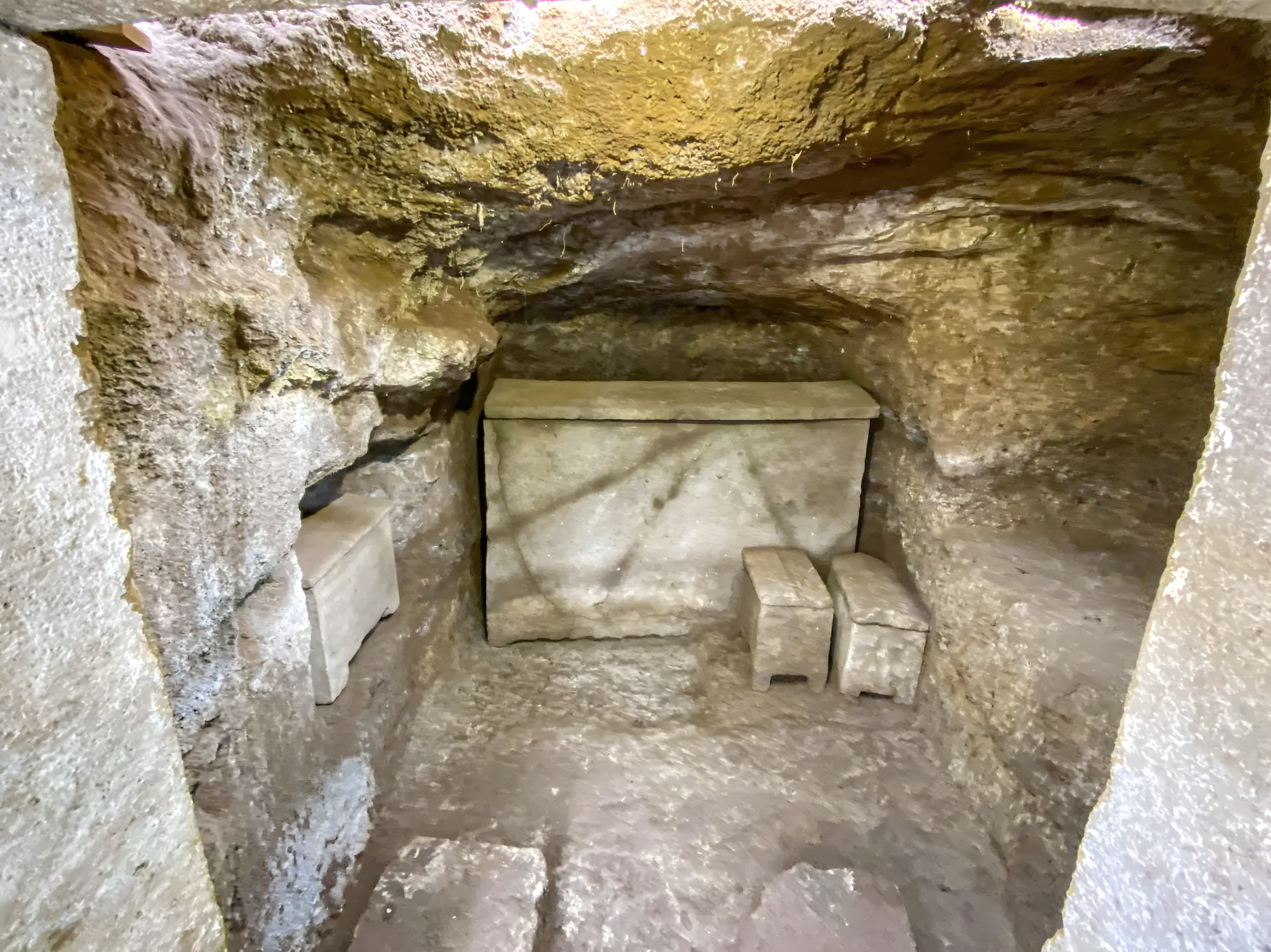 최근 발굴된 이 장례 유적은 비아 디 피에트랄라타(Via di Pietralata) 아래 경사진 응회암 지대tufa bank에 조성되었으며, 주로 두 개 무덤으로 구성된다.