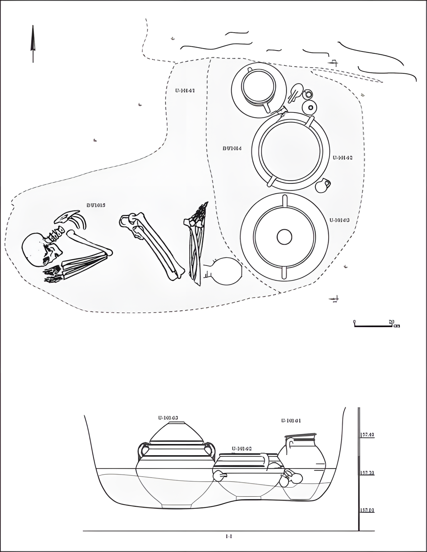 화장 매장은 보존 상태가 좋지 않았고, 유해가 한 명 성인일 가능성이 높다는 사실 외에는 거의 확인할 수 없었다.