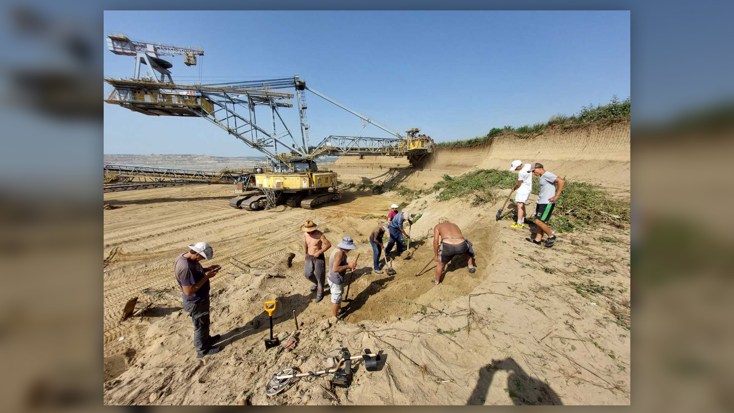 탄광 석탄층은 기계식 굴착기로 표토를 제거해야 도달할 수 있는데, 난파선은 굴착면 벽면에서 발견되었다.