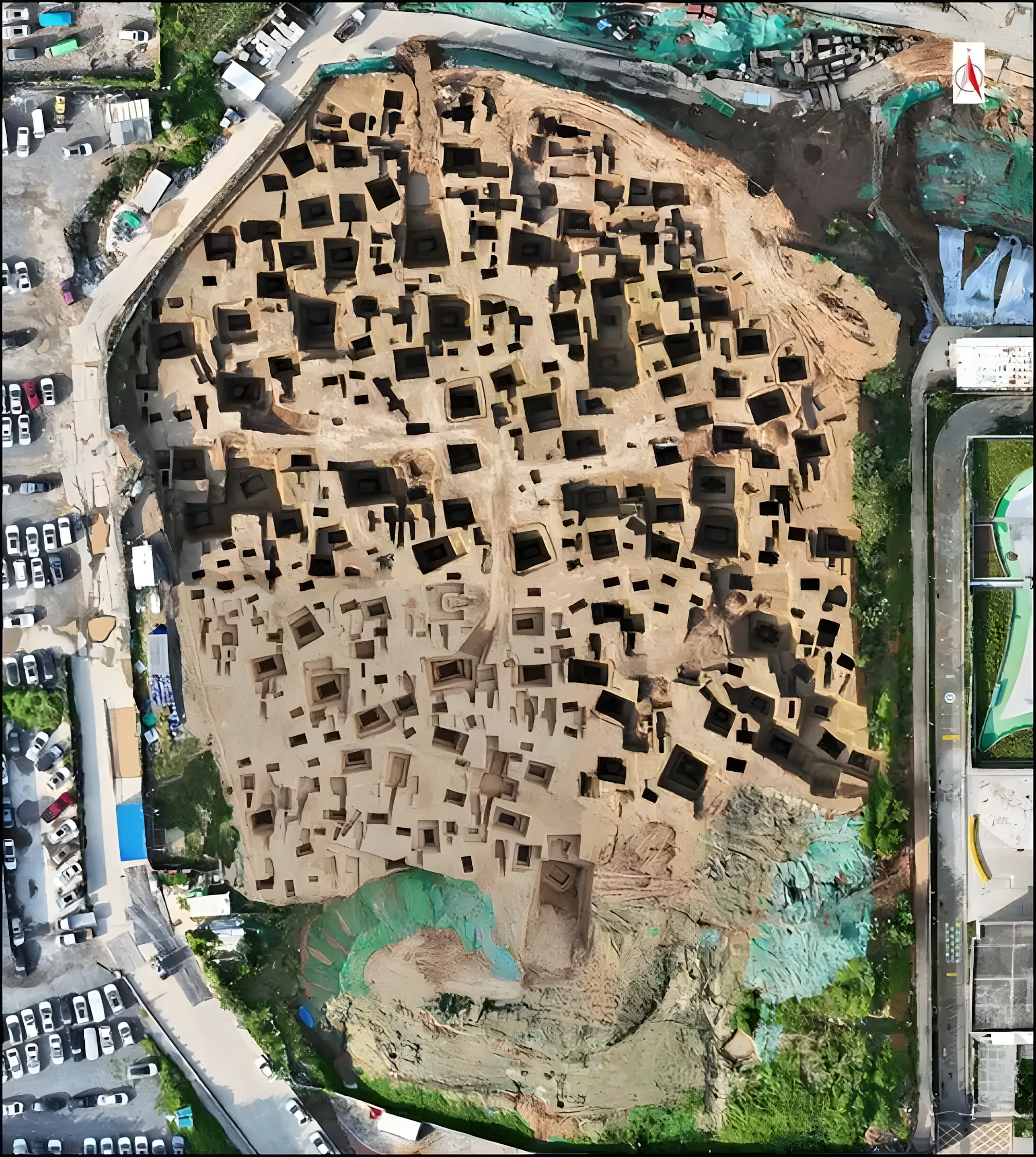 이에는 전국 시대 무덤 309기와 전차와 말 구덩이 1개, 당나라 무덤 214곳, 한·수·송·청 왕조 무덤과 재 구덩이가 소수 포함된다.