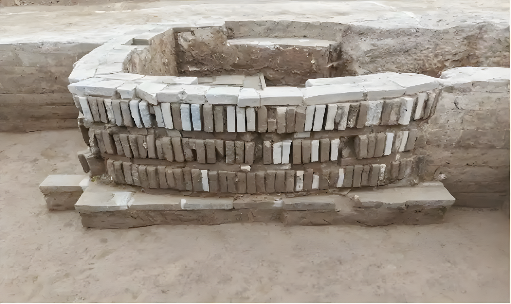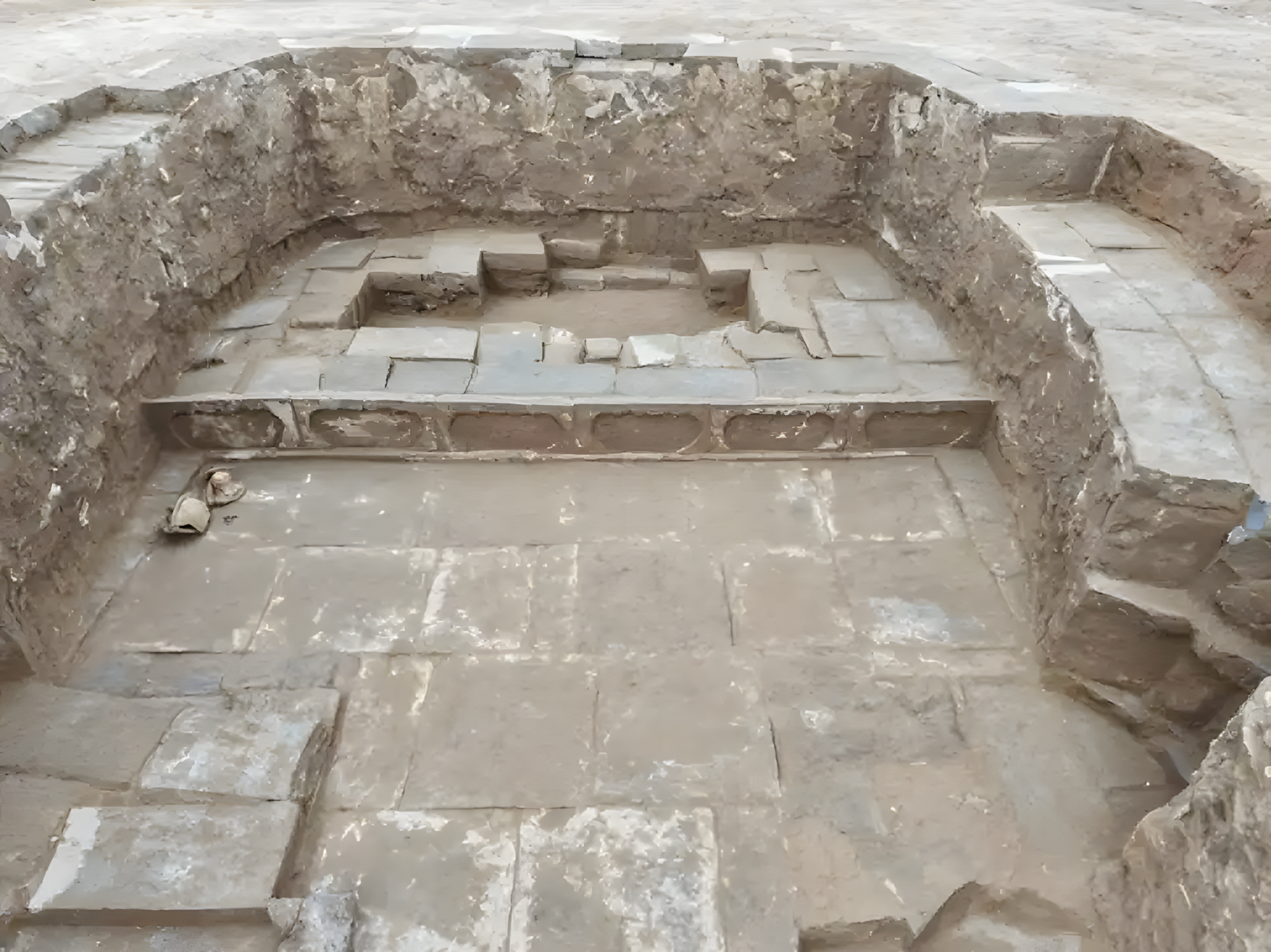 바닥은 엇갈린 이음새로 세 줄로 쌓은 정사각형 벽돌로 깔았다. 정사각형 벽돌 크기는 0.32×0.32×0.06m다.