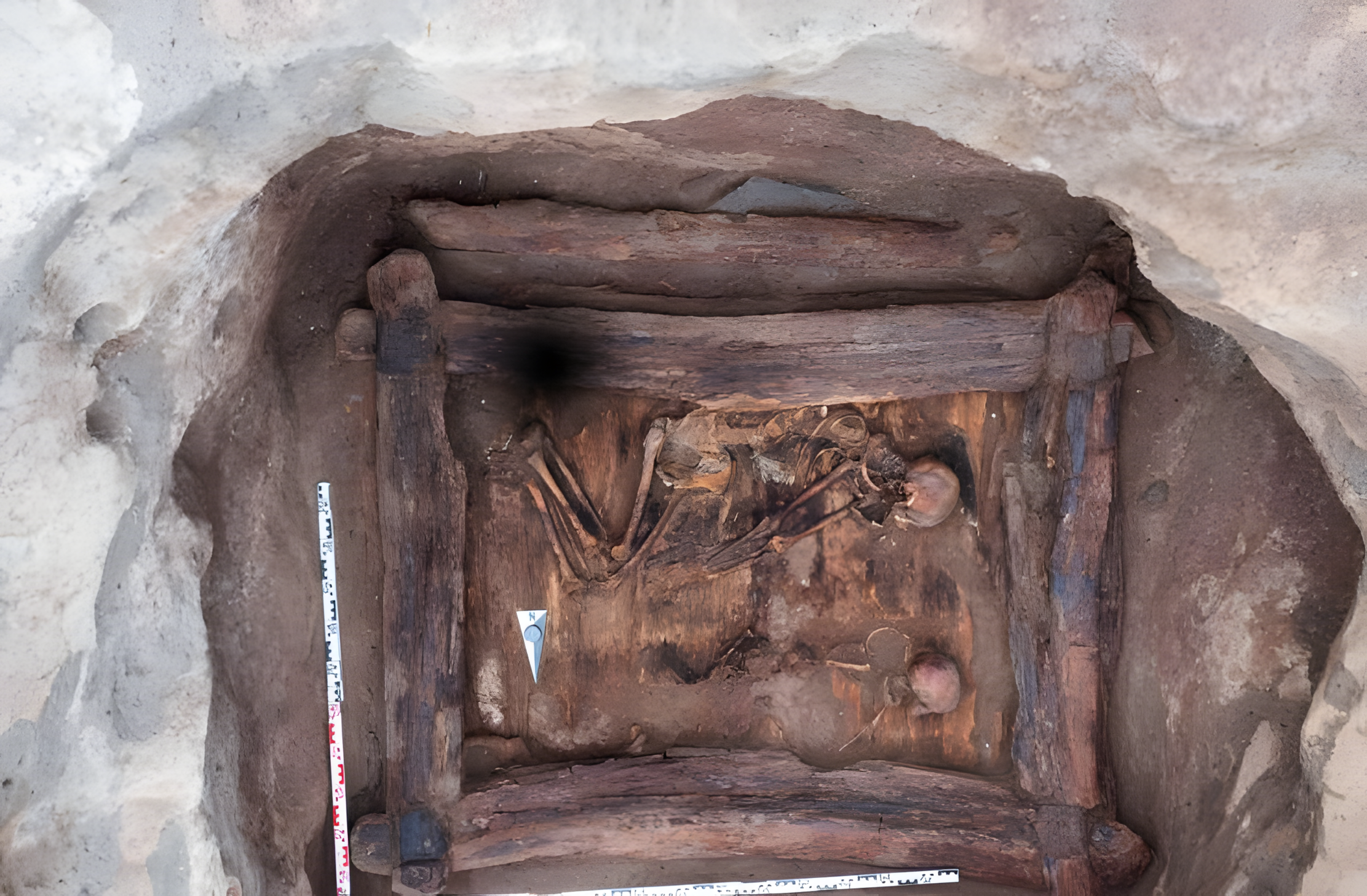 고고학자들은 이 봉분을 발굴하여 중앙에서 목조 매장실wooden burial chamber을 발견했다.