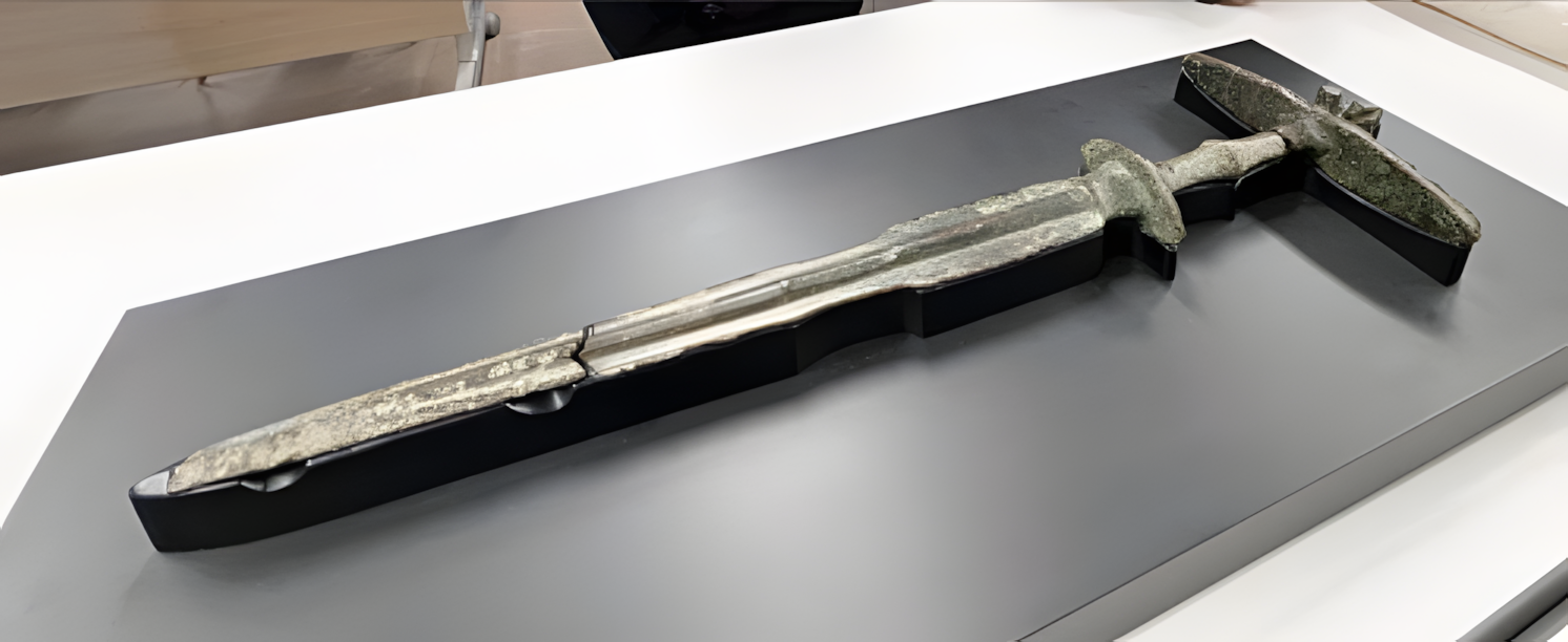 2024년, 소유자가 시에 기탁했지만 7점으로 파손된 상태였기에 시는 25년도에 258만엔 예산을 짜서 전문업자에게 보존·수리를 위탁했다. [훗날 깨졌을지 모르지만 저 정도 동검이면 일부러 짜개서 넣었을 가능성이 많다. 이른바 훼기毁器 흔적일 수 있다.]
