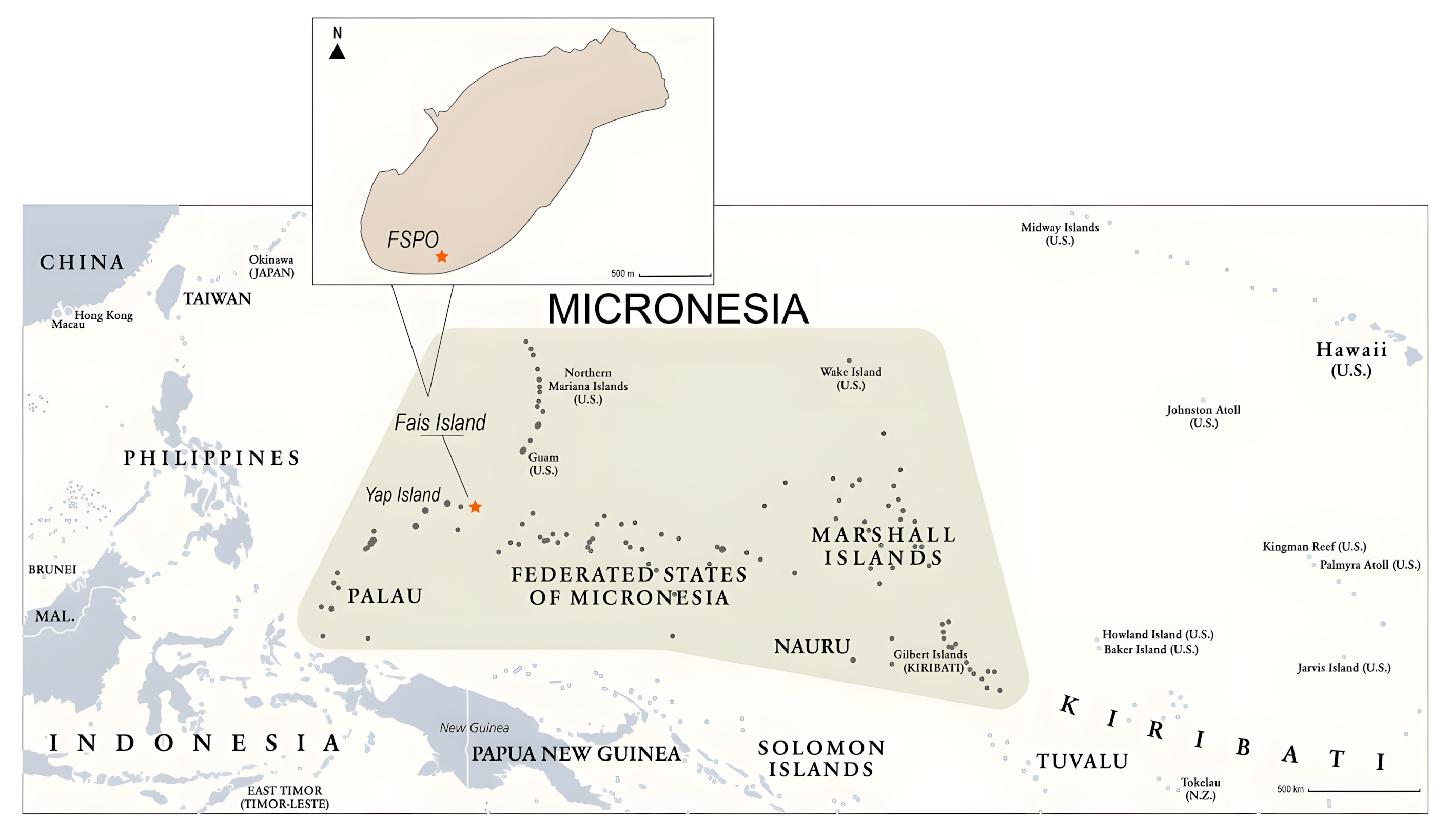미크로네시아 야프 주Yap State of Micronesia에 있는 작은 산호섬coral island인 파이스Fais는 고고학적 관심 지역이 되었다. 이 섬에 대한 여러 차례 탐사를 통해 남쪽 해안에서 포와Powa 유적이 발견되었다.
