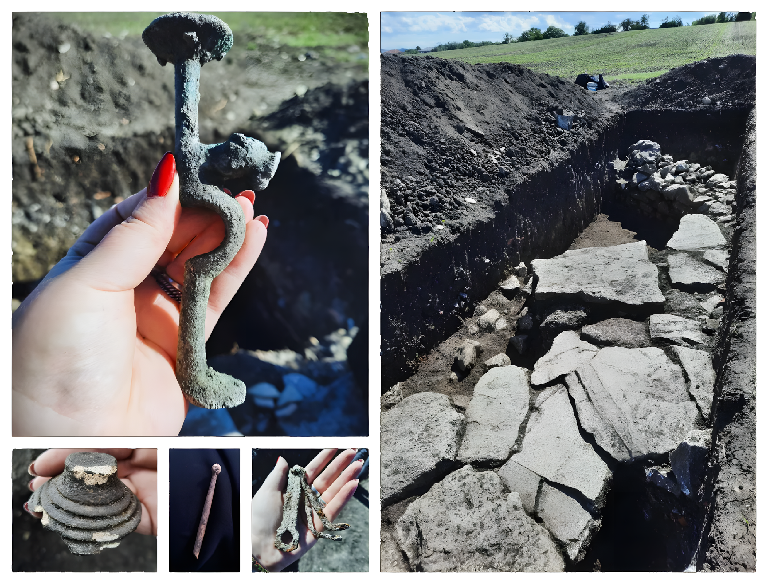 유리 장신구, 뼈로 만든 머리핀, 청동 반지와 같은 개인 장신구와 동전, 그리고 여러 종교 유물을 포함한 여러 고귀한 유물도 함께 발굴되었다.