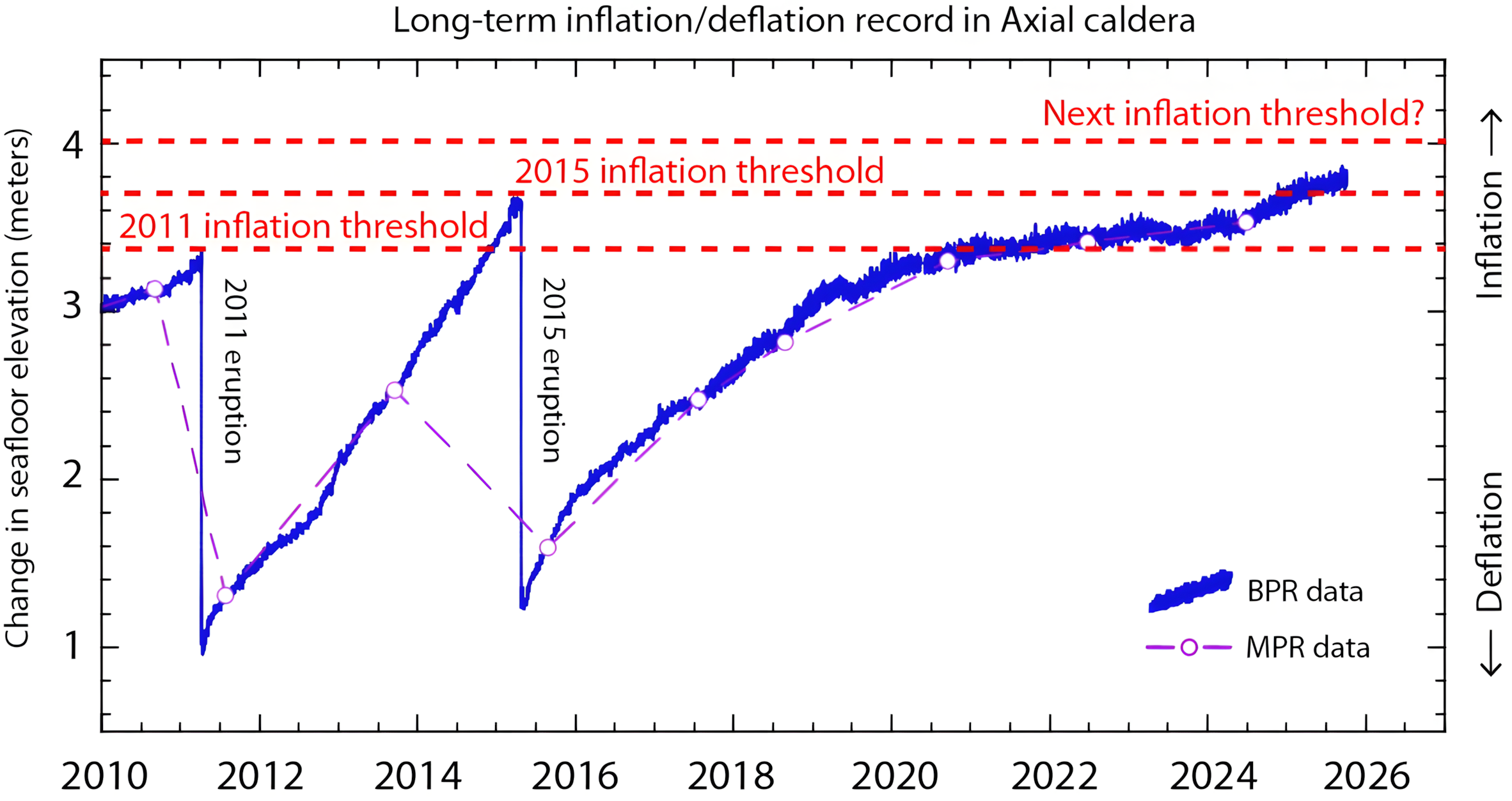 2015년 분출 이후 해산 아래의 인플레이션이 다시 증가하기 시작했다.