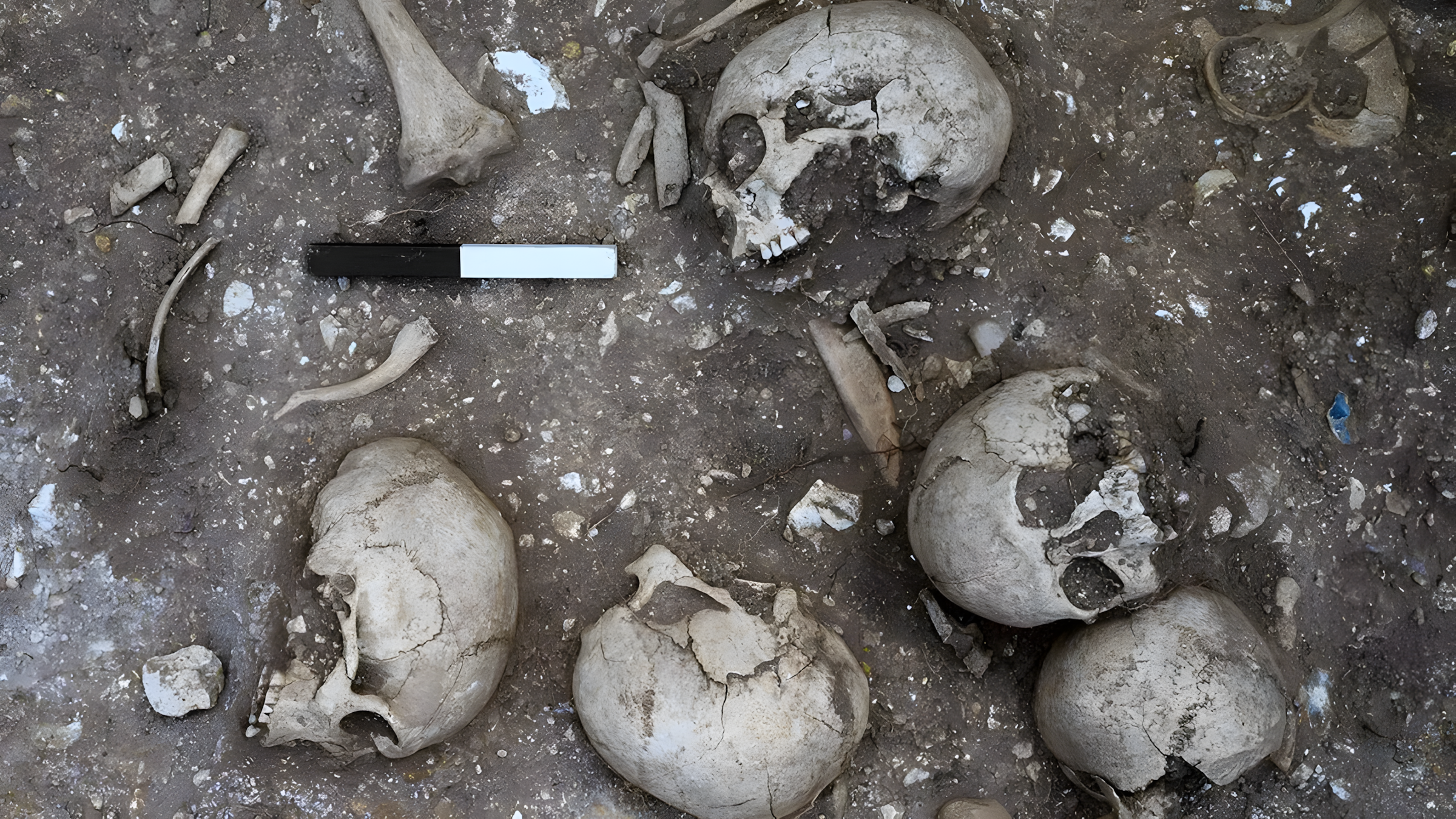 뇌 수술을 받은 것으로 추정되는 키가 매우 큰 한 남성 해골도 함께 발견된 이 특이한 집단 매장지는 9세기 색슨족Saxons과 바이킹족 간 분쟁과 관련이 있을 가능성이 있다.