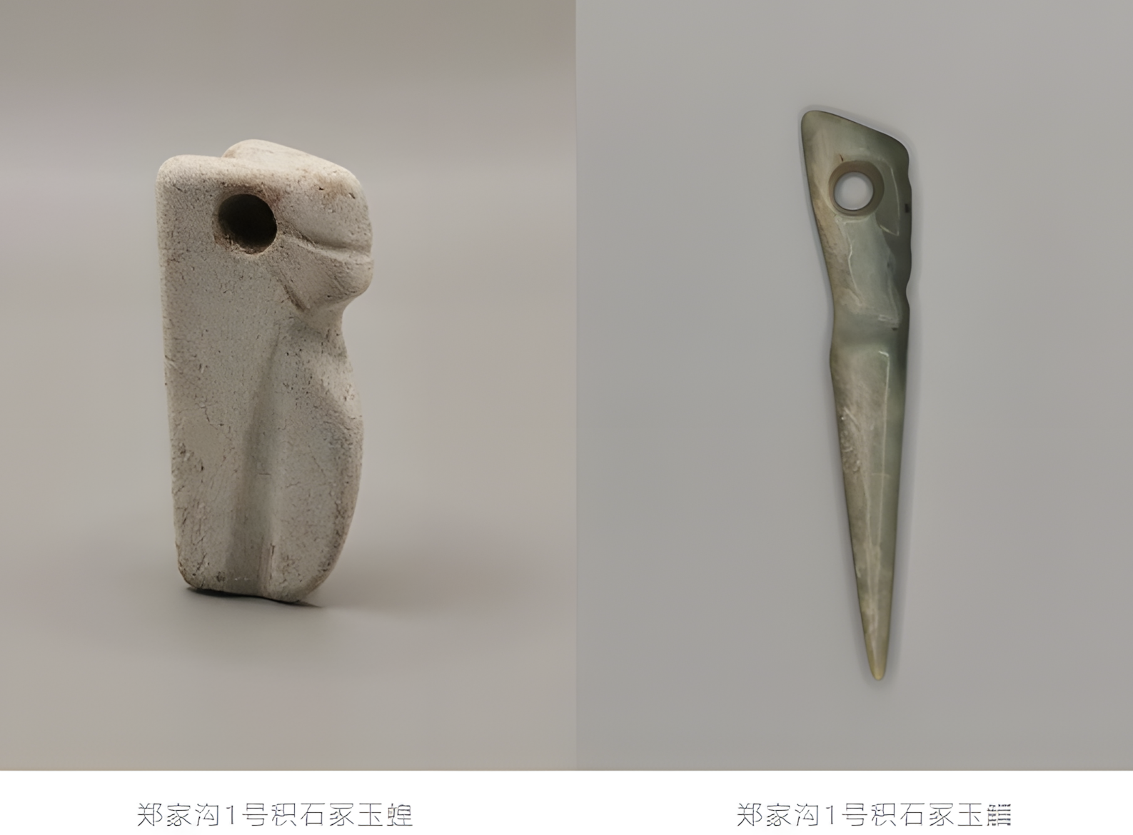 Jade artifacts typical of the Hongshan culture, such as a jade dragon in the shape of a ring and a three-linked jade bi, have been unearthed, along with over 400 pieces (sets) of pottery and stone tools characteristic of the Miaozigou culture of the Hetao region and the Miaodigou culture of the Central Plains.