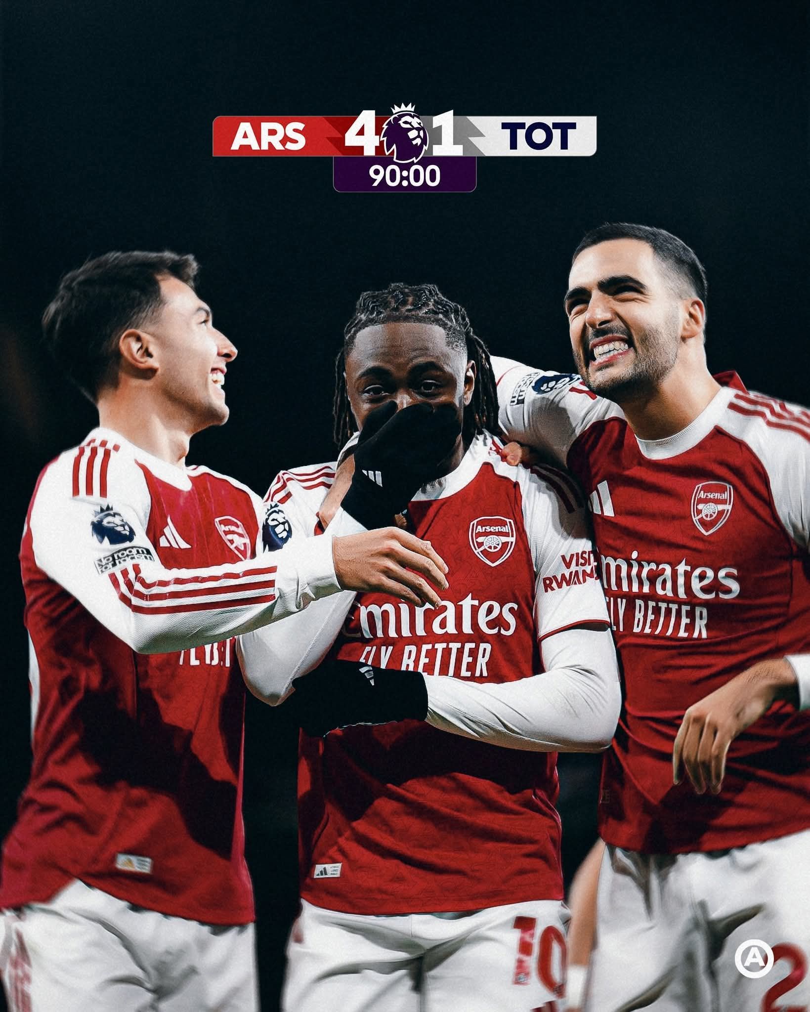압도하는 퍼포먼스, 에제 해트트릭 앞세워 토트넘 대파한 아스널