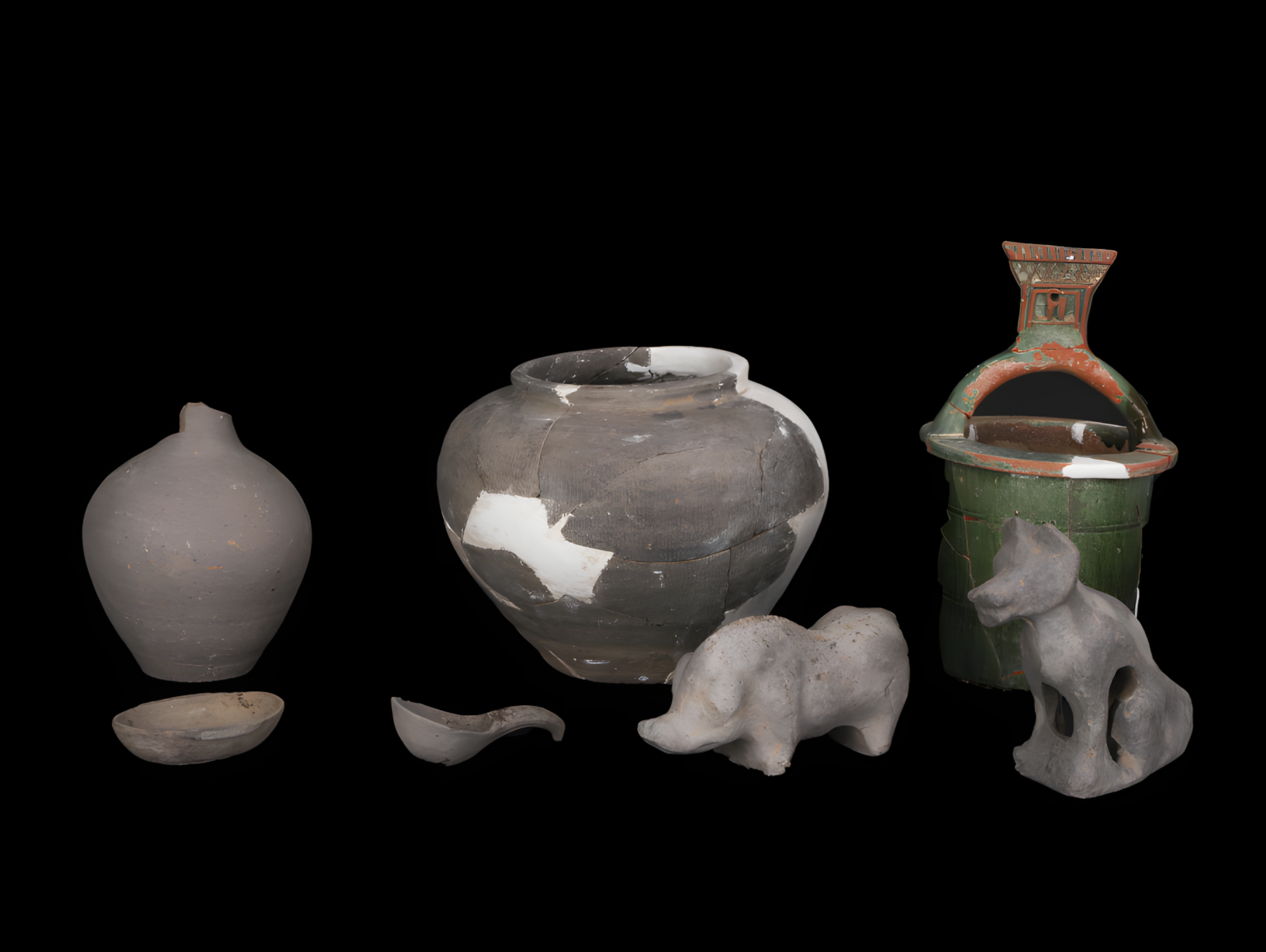 이 동한 시대 무덤에서 나온 부장품은 주로 도기와 유약도기였으며, 소량 청동기와 납으로 만든 마구马具도 함께 출토되어 동한 말기의 전형적인 특징을 보여주었다.