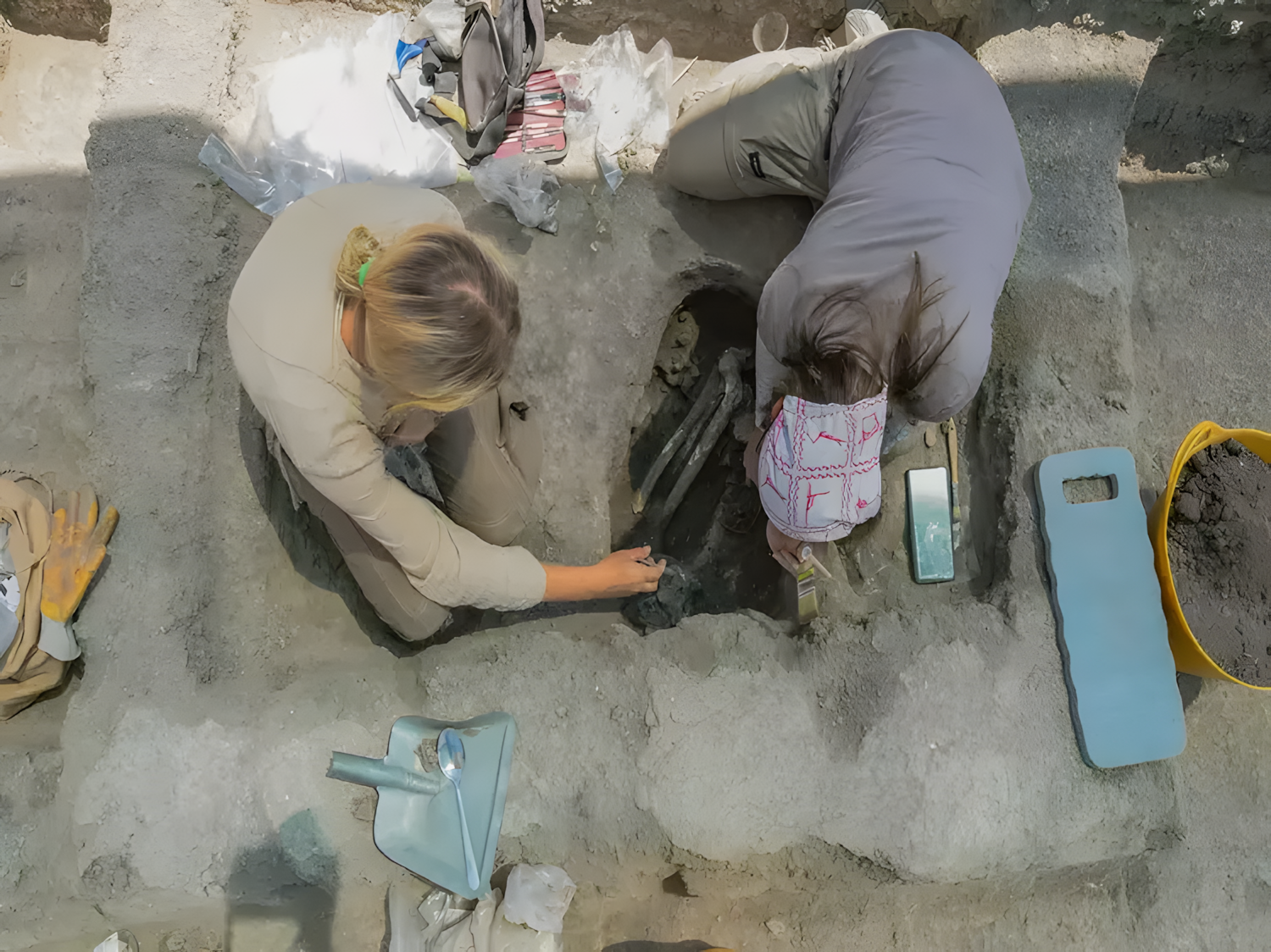 동부 정착지에서 가장 오래된 구조물 중 하나에서 단 아래에 세 구 매장지가 발견되었지만, 정확한 연대를 확인하기 위해서는 방사성 탄소 연대 측정이 아직 필요하다.