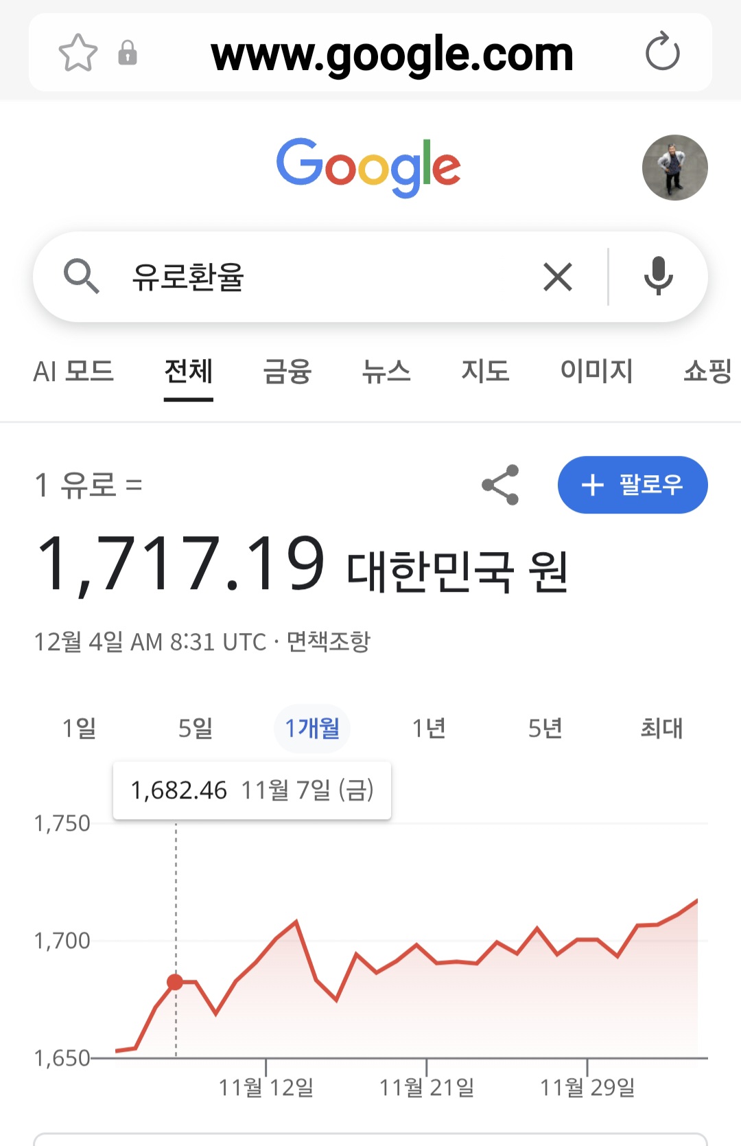 작년 오늘 나는 유럽에 있었고 계엄 직후라 환율변화를 더 체감했다.