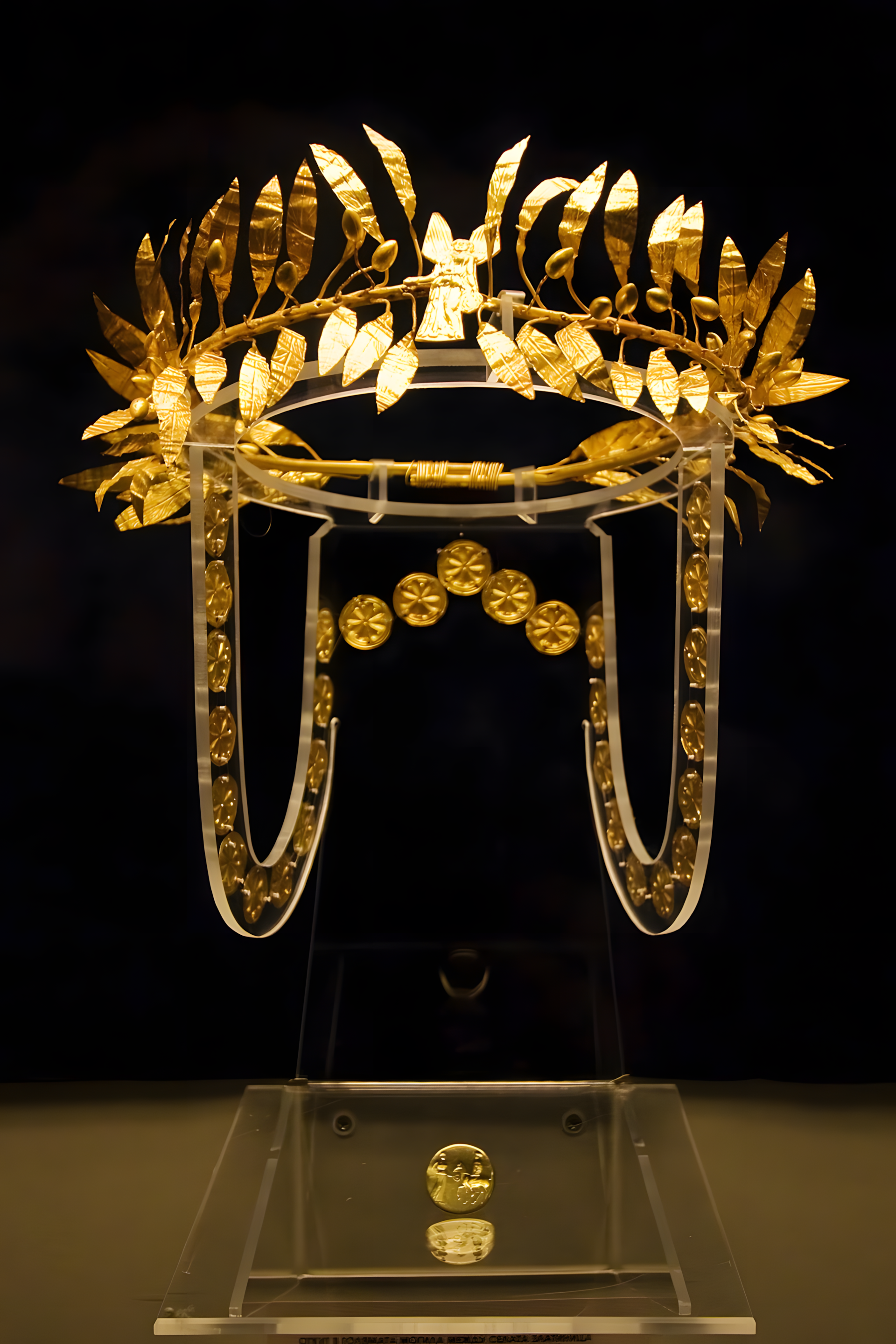 기원전 4세기, 트라키아 오드리시아Odrysia 왕국 어느 귀족이 묻힌 골리아마타 모길라Golyamata Mogila 무덤 출토 금환golden wreath 역시 시체 혹은 귀신이 쓰고 가는 물건이라 해서 대강대강 대충대충 만들어줬을 뿐이다. [불가리아 소피아 국립고고학박물관? 소장. 맞나? 암튼 대세엔 지장 없으므로.]