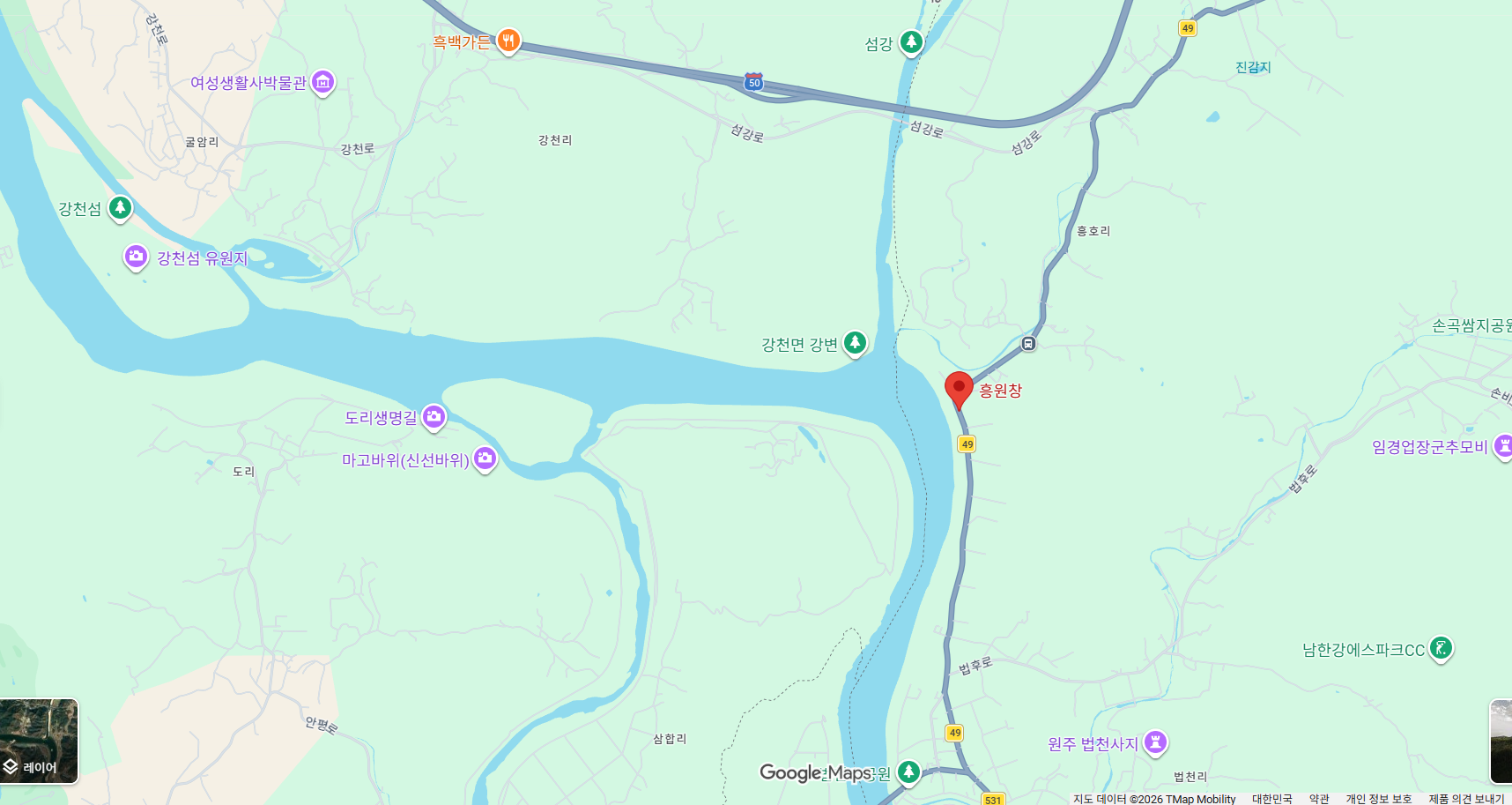 요새 같음야 드론 띄우면 되겠지만, 저 작은 오른쪽 샛강이 섬강이라 해서 원주 시내를 관통해서 이 흥원창 지점에서 남한강에 합류한다.