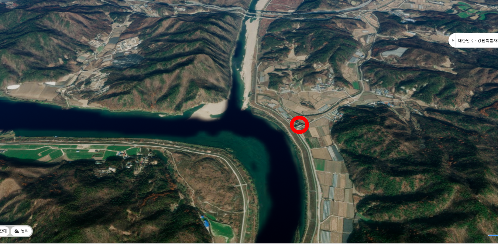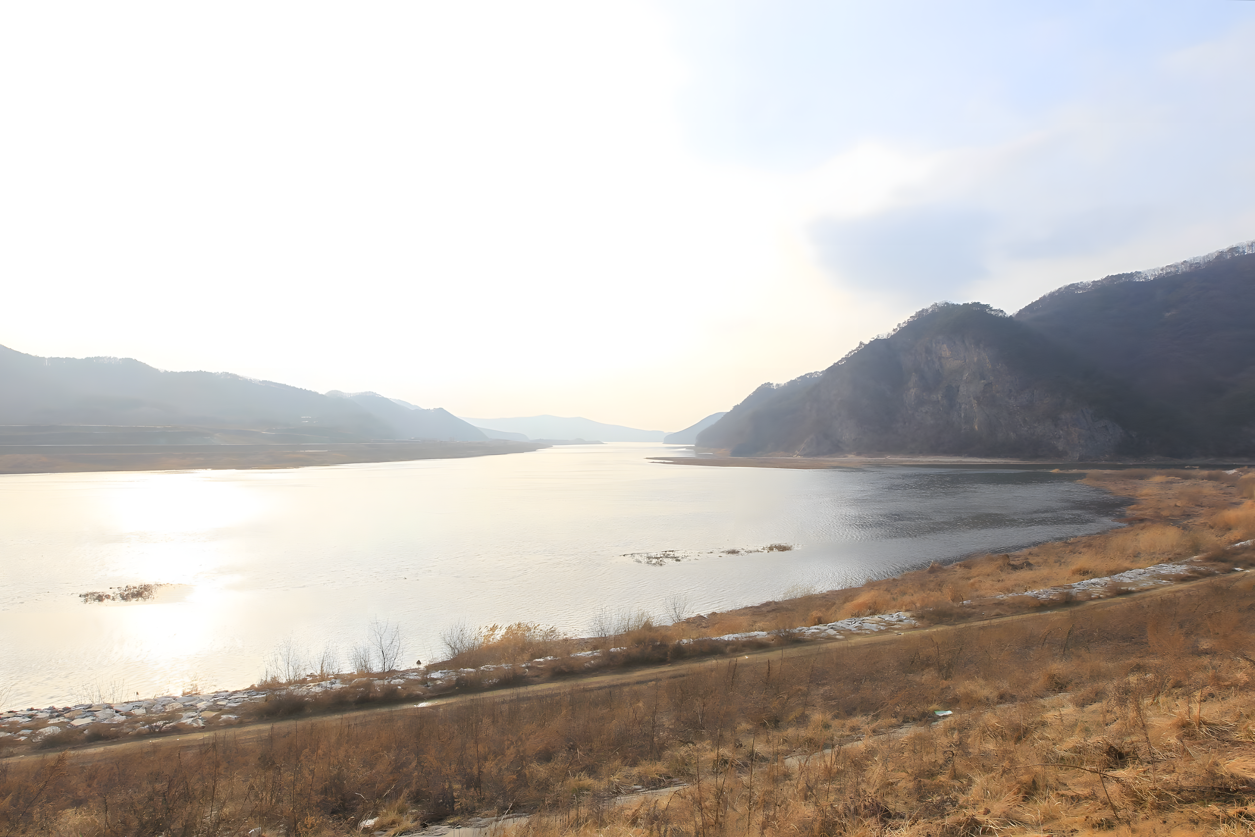 바라 보는 이 기준 큰 강물이 남한강 본류라 저 큰 강이 양평에서 북한강과 만나 한강 본류를 형성해 서울을 관통해 서해로 흘러들어간다.