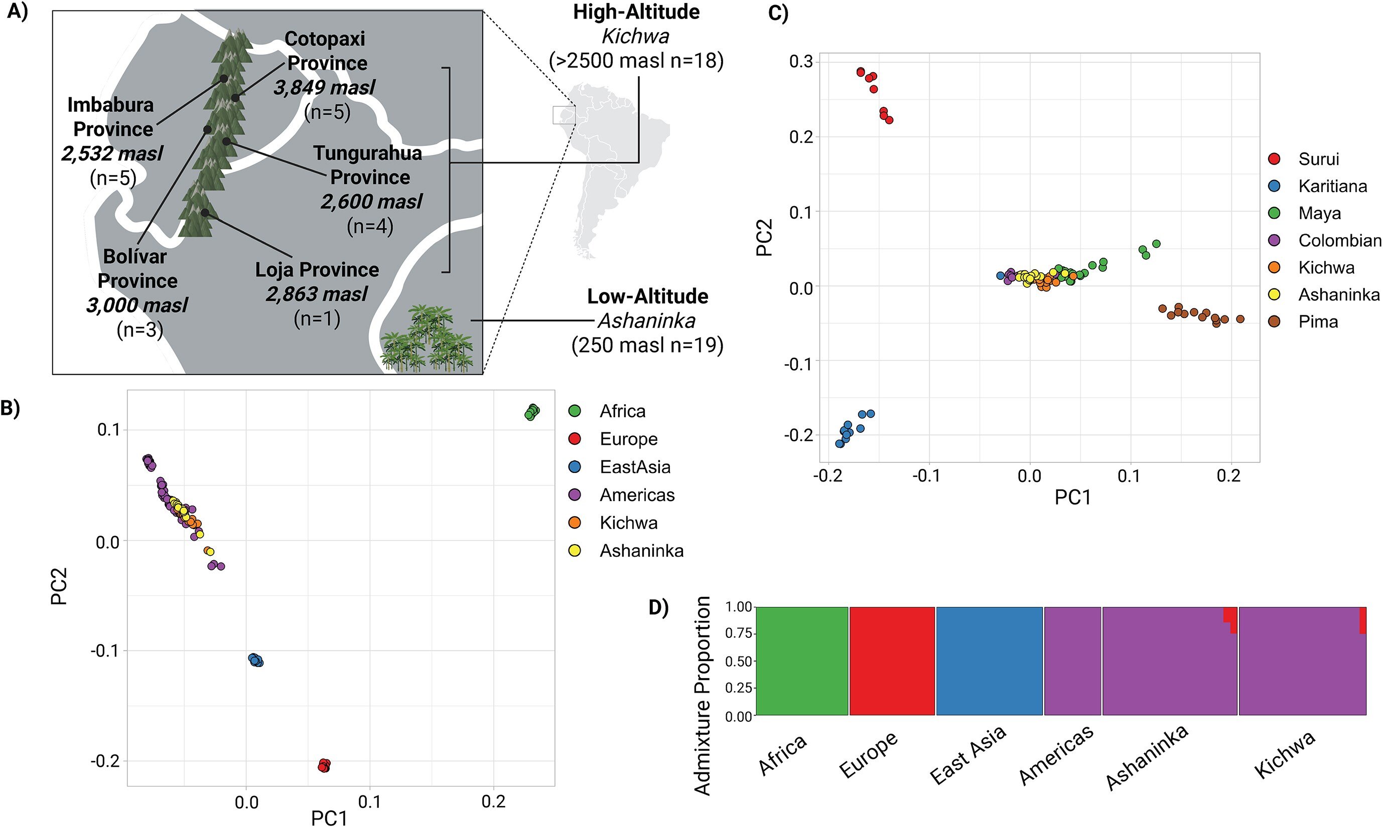 연구진은 에콰도르 안데스 고원 지대 키추아족Kichwa과 에콰도르 페루 국경 지대 아마존 저지대 아샤닌카족Ashaninka, 이 두 현대 원주민 집단에 속하는 39명의 메틸롬을 비교했다.