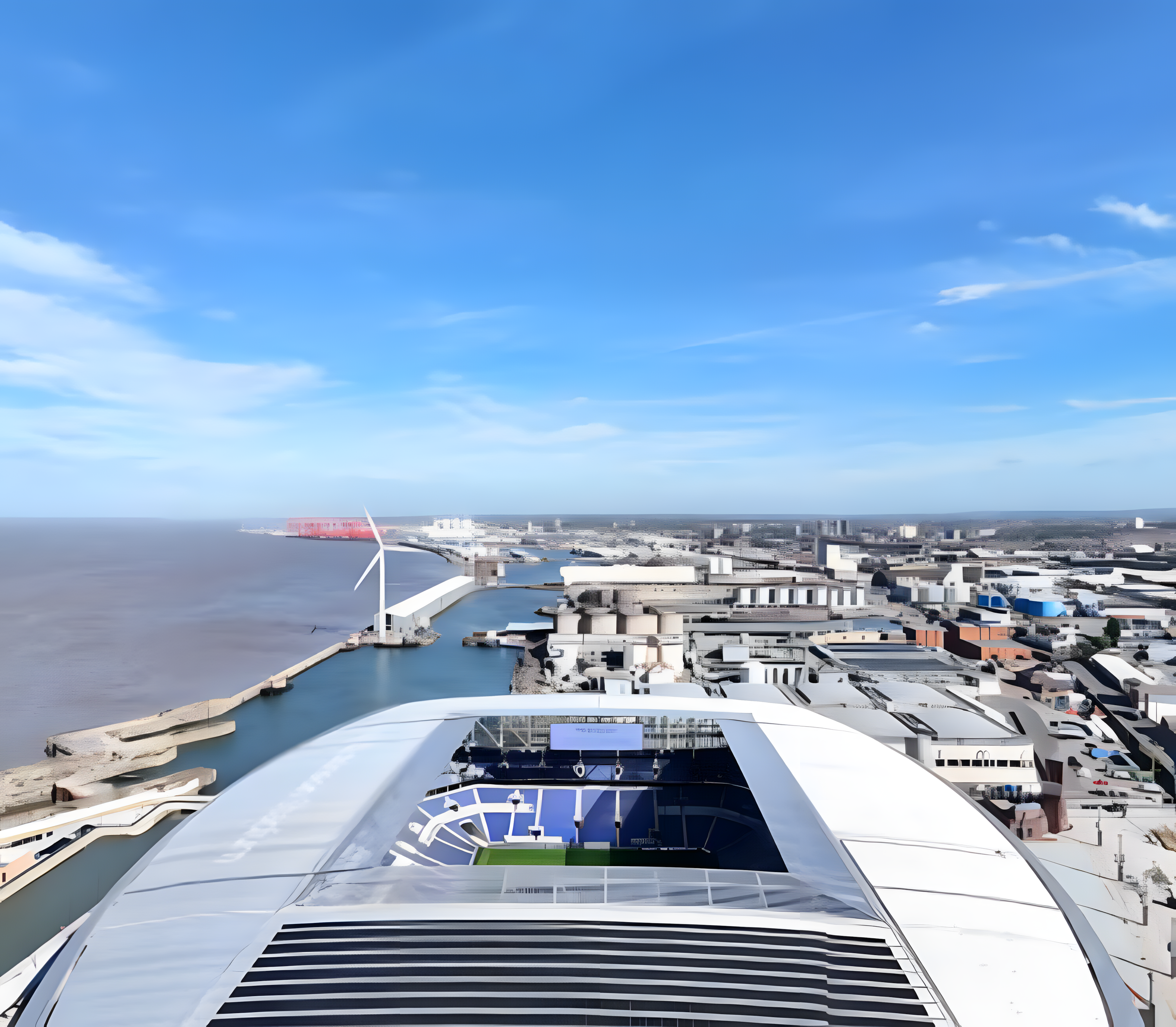 이전 세계유산에 등재되었다가 그 목록에서 삭제된 리버풀 옛 항구에 리버풀을 연고지로 삼는 잉글랜드 프리미어리그 명문 에버튼 FC 홈구장이 들어서는 모습을 담은 영상이다.