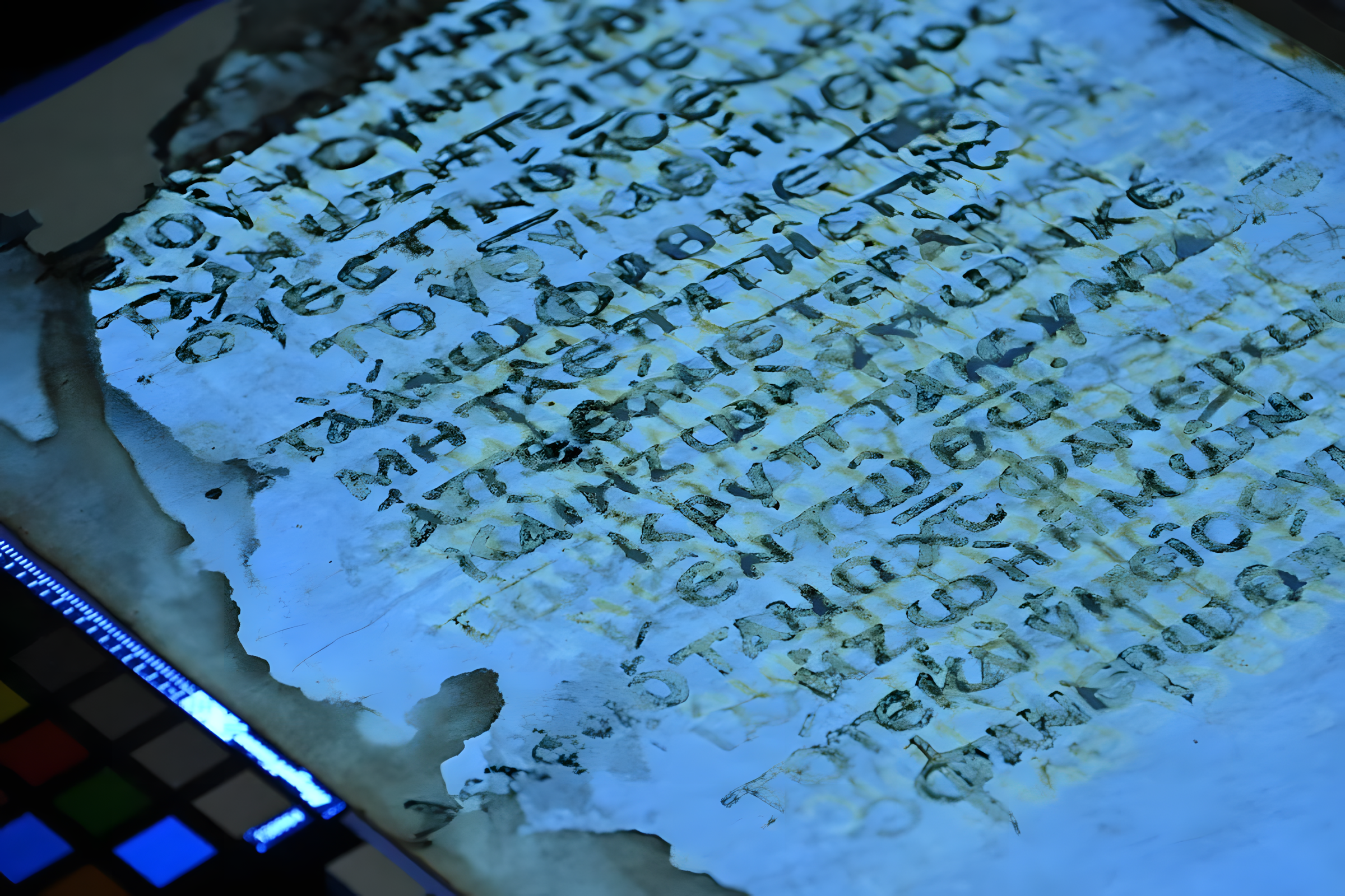 다양한 파장의 빛 아래에서 이미지를 촬영함으로써, 더 이상 존재하지 않는 페이지에서 희미한 흔적들을 분리하고 강화해 읽을 수 있는 "유령ghost" 텍스트를 복원할 수 있었다.