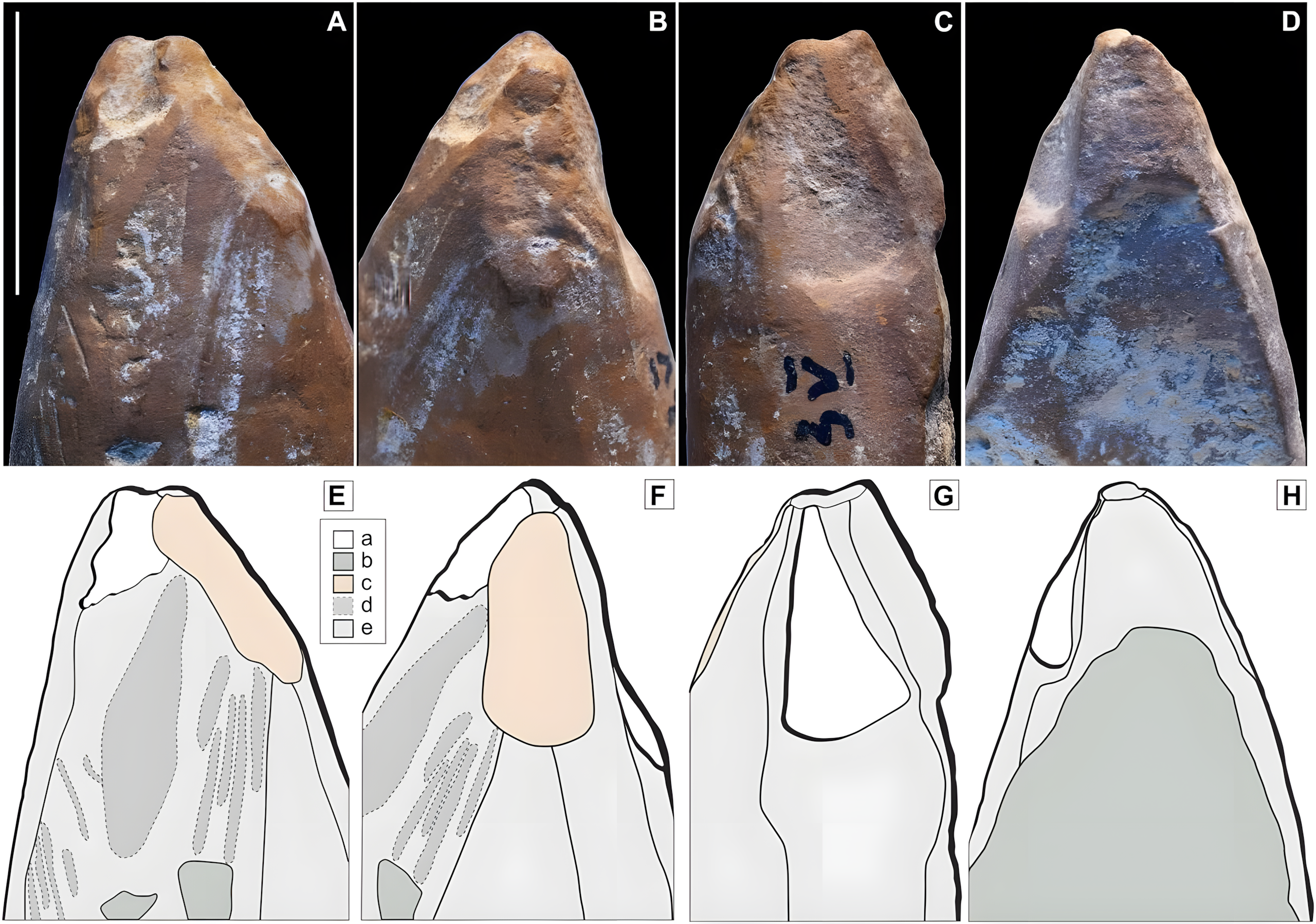 휴대용 X선 형광 현미경과 주사 전자 현미경을 사용해 각 조각 구성, 질감, 그리고 미세한 마모를 연구했다.