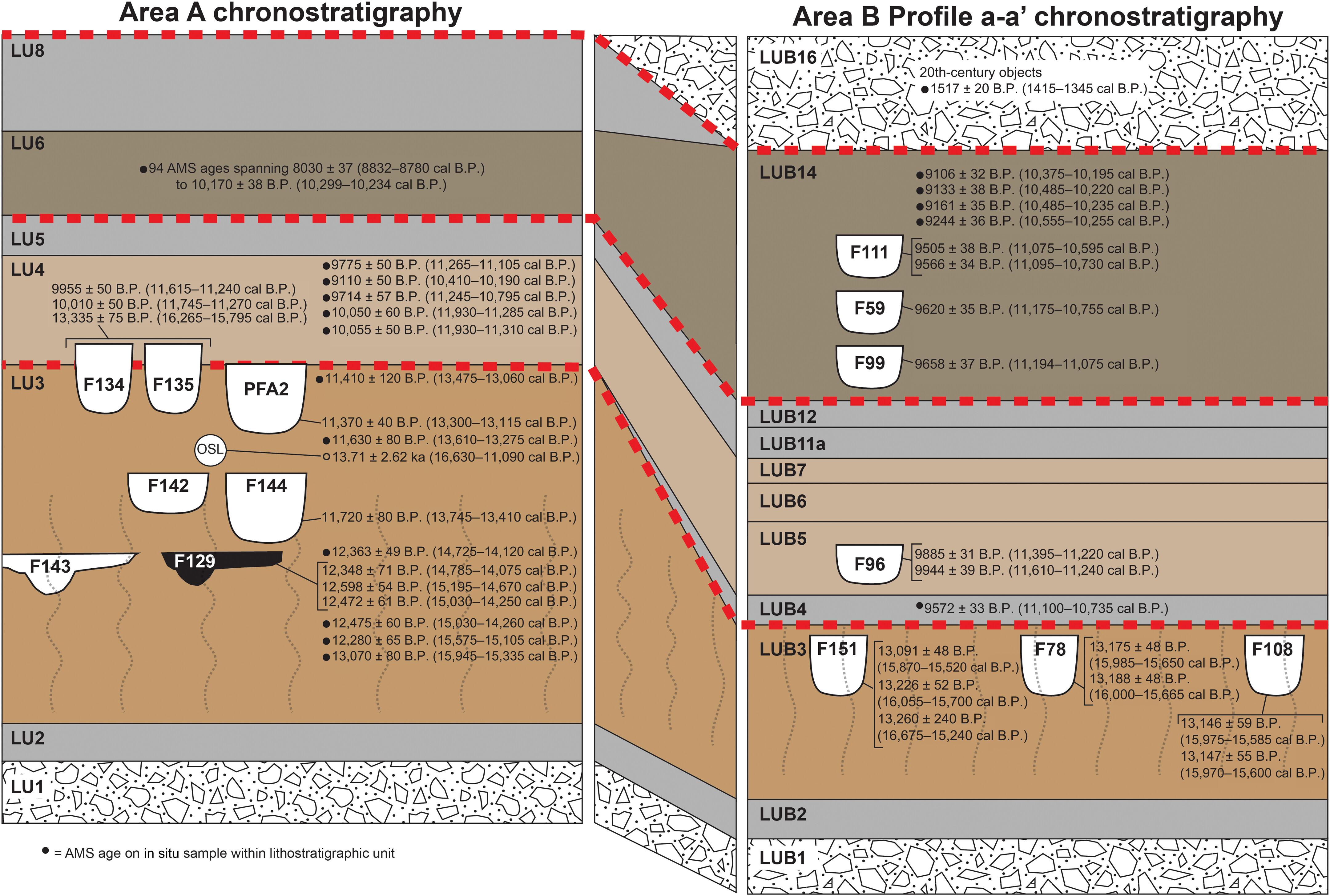 날카롭고 길이가 약 1.2cm에서 5cm에 이르는 이 13개 완전한 화살촉과 파편들은 탄소-14 연대 측정 결과 약 15,700년 전 것으로 밝혀졌다.