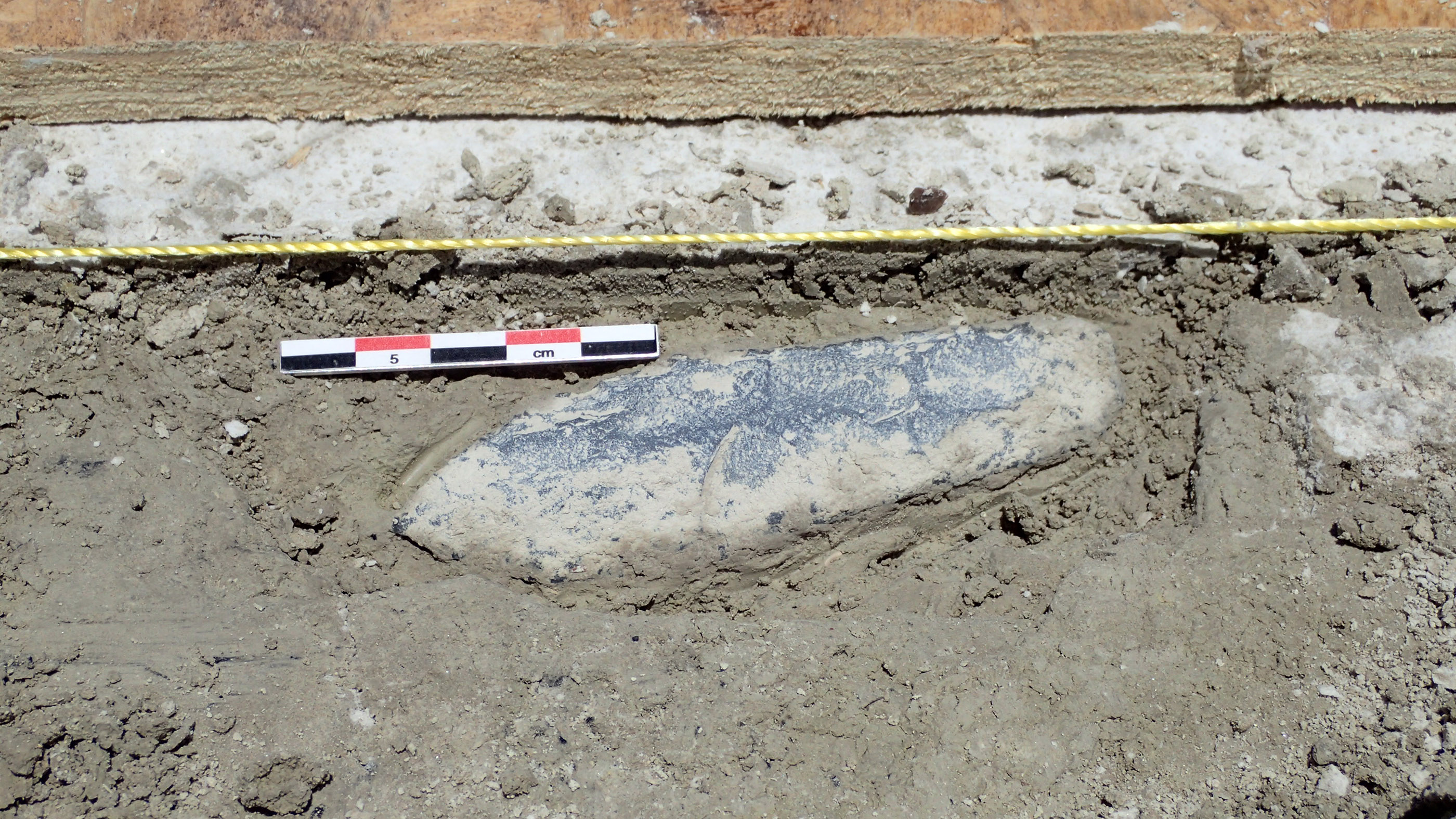 과학자들은 대형 사냥에 자주 사용한 창촉과 같은 석기 유물로 둘러싸인 온전한 고대 화덕fireplace을 발견했다.
