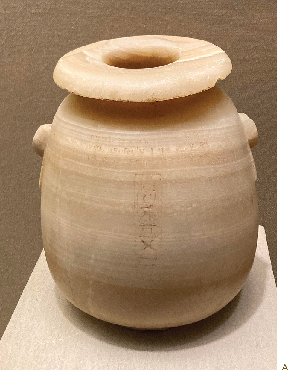 온전히 보존된 몇 안 되는 유물 중 하나인 이 병은 방해석calcite으로 조각되었으며, 네 가지 고대 언어로 크세르크세스 1세에게 헌정되었다.
