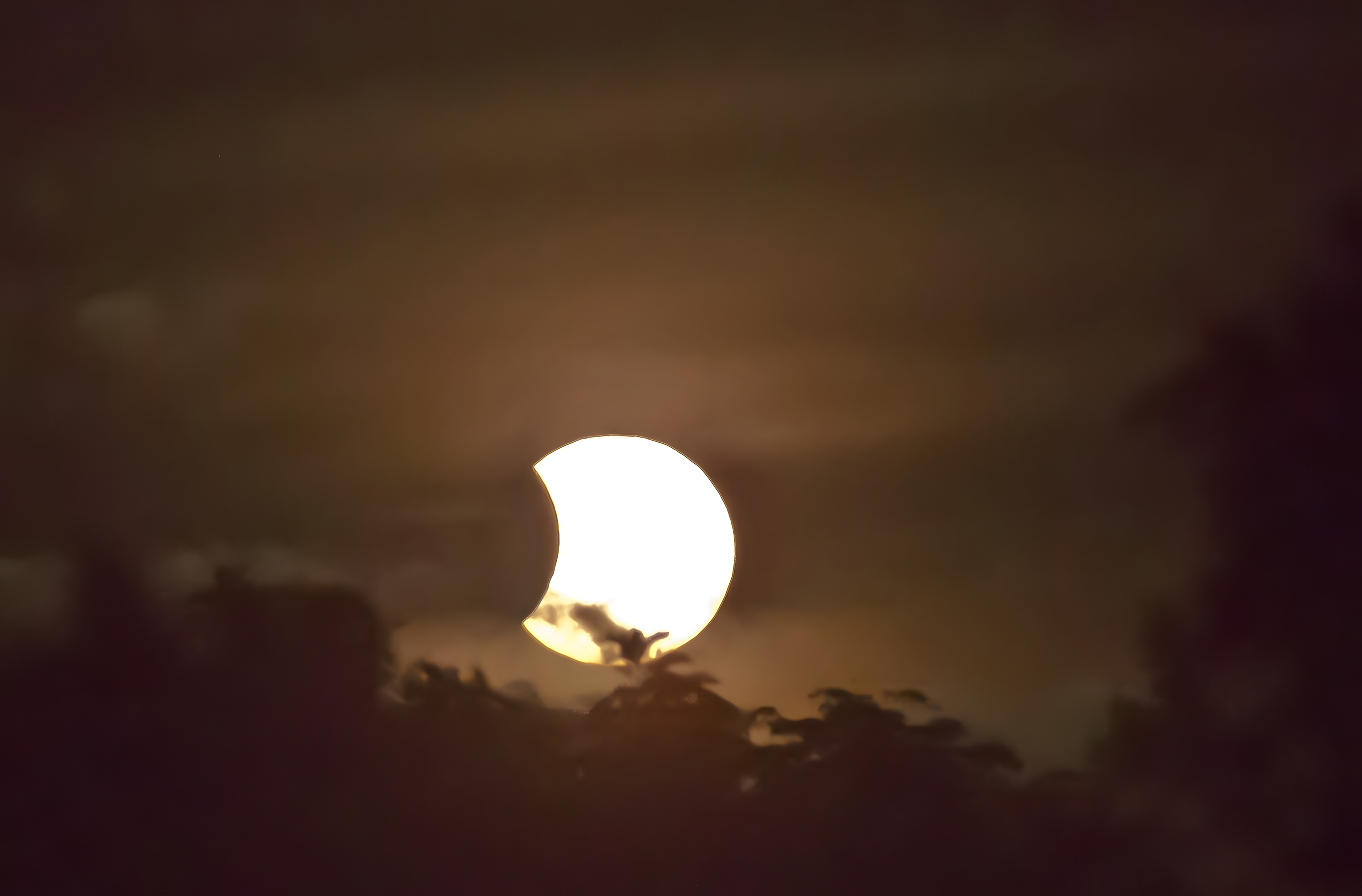 태양이 완전히 가려지지는 않았지만, 달이 태양빛을 충분히 가려 불타는 고리 모양을 만들었다.