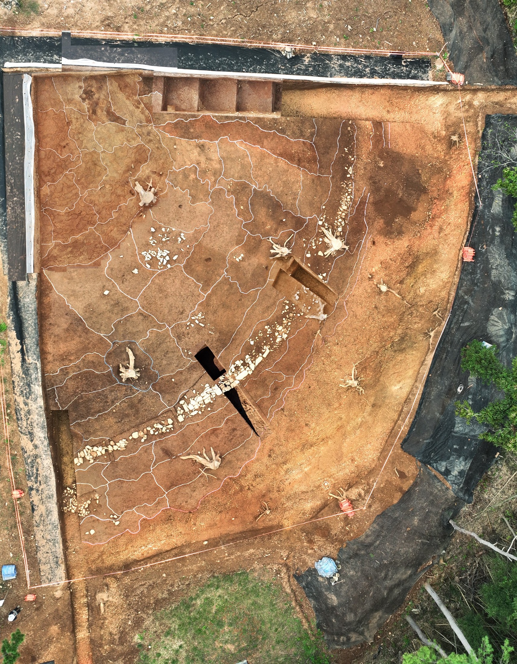 봉분 기준이겠거니와 암튼 남북 47.5m, 동서 53m, 높이 7.6m에 달하는 초대형 원형 봉토분으로 확인했으며, 이 정도면 가야권역 내 최대 규모 고분임이 다시 한번 입증되었다고 한다.