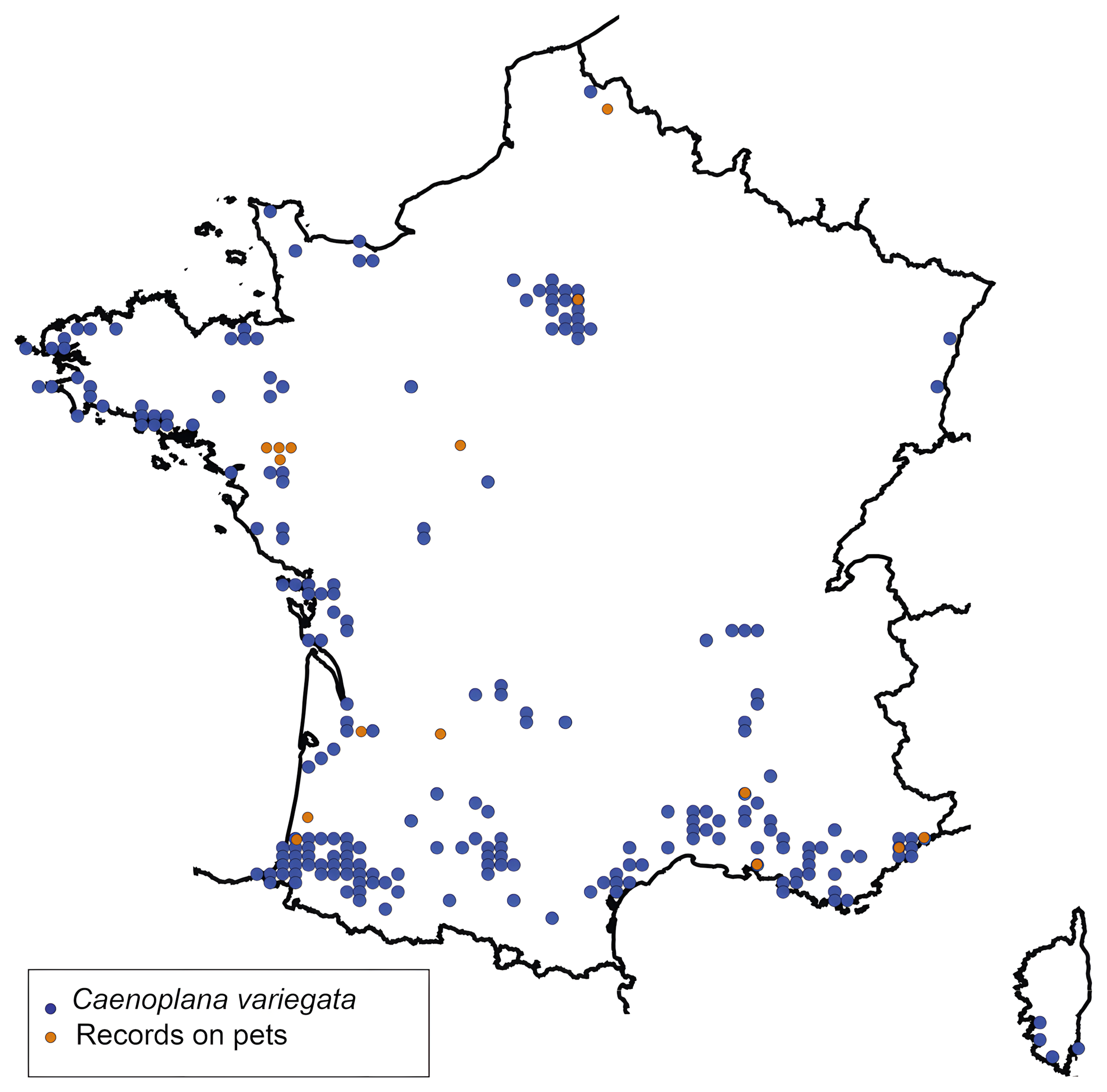 놀랍게도 프랑스에 침입한 약 10종 편형동물 중 실제로 관련된 종은 Caenoplana variegata 하나뿐인 것으로 나타났다.