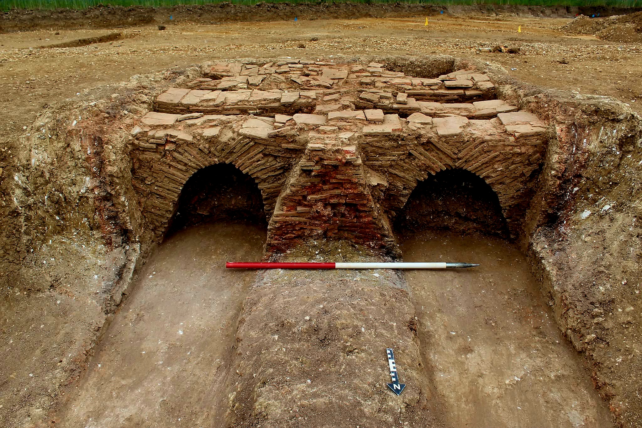 13세기 내지 14세기로 거슬러 올라가는 쌍둥이 타일 가마twin‑flued tile kiln가 발견된 것이다.