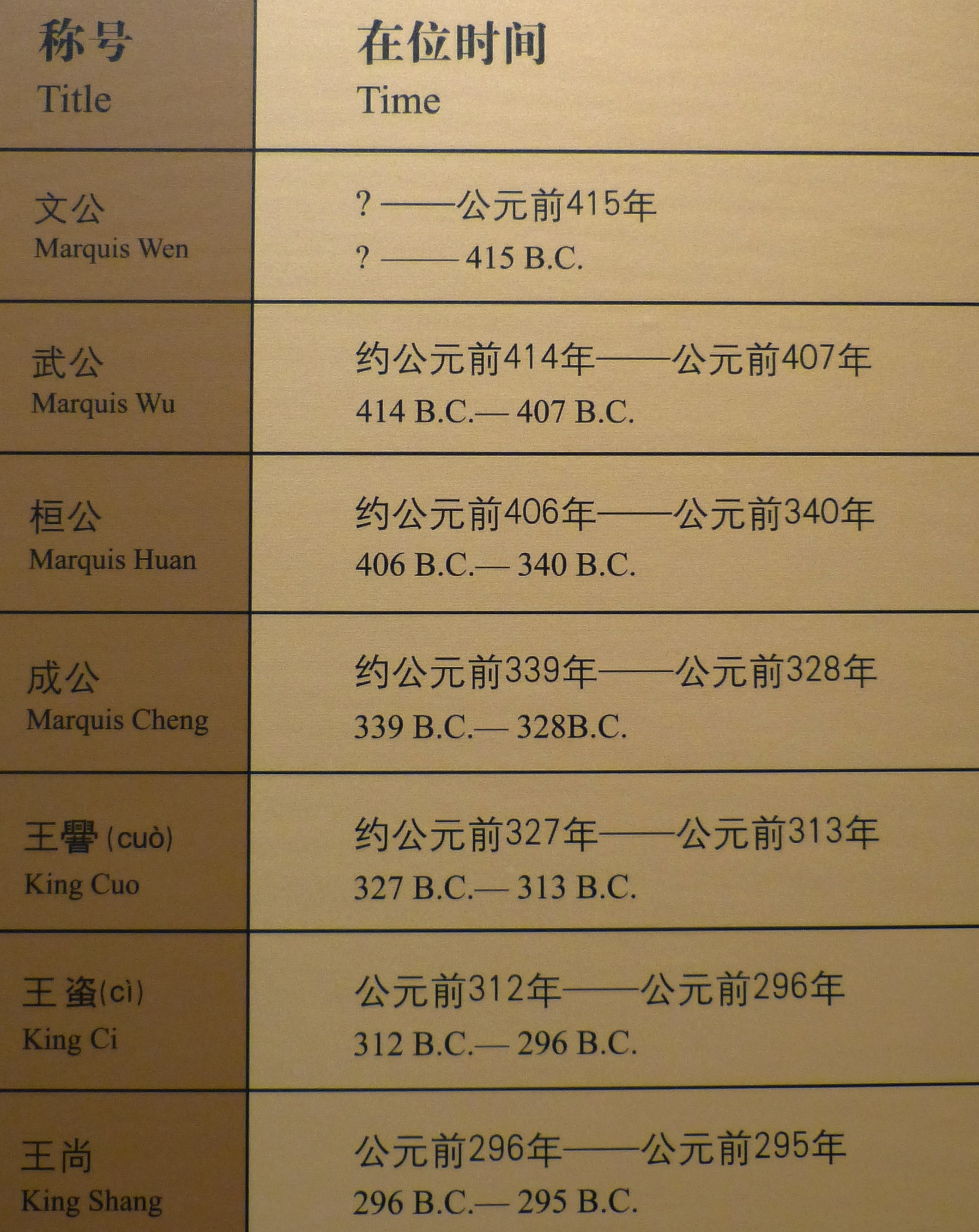 이게 전국시대에 해당하는 역대 중산국 군주와 재위 기간이다.