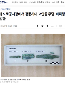 Violin-shaped bronze dagger found from bronze age dolmen tomb 남해 도로공사장에서 청동시대 고인돌 무덤·비파형 동검 발굴송고시간 | 2019-06-25 19:00 Violin-shaped bronze dagger found from bronze age dolmen tomb ( Namhae = Yonhapnews ) Two dolmen tombs and a violin-shaped bronze dagger from the the 5th to the 4th century BC Bronze age have been discovered during the national road construction work at Namhae-gun County, Gyeongsangnam-do Province. According to archaeologists, a lot of arti.. 2019. 6. 25.